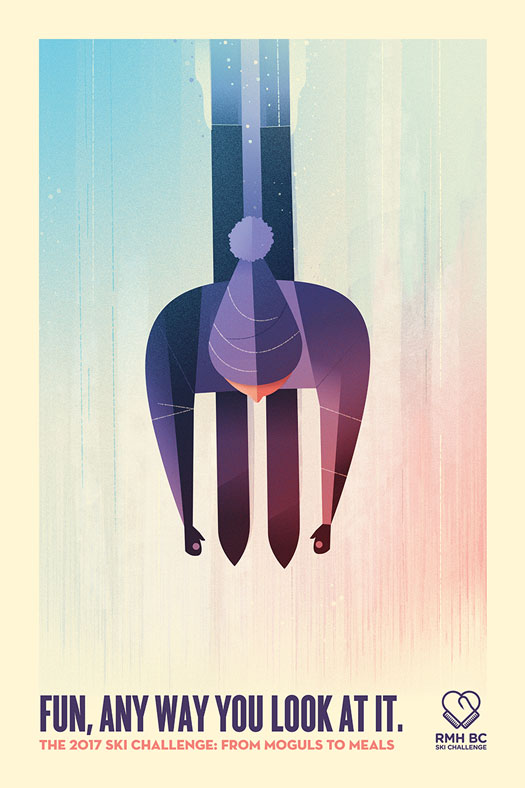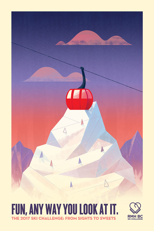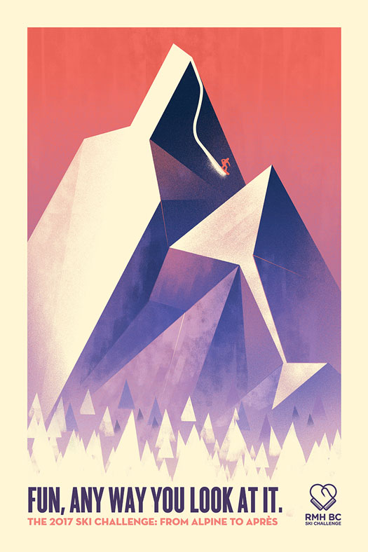 The Ronald McDonald House Ski Challenge is an annual fundraiser that takes place in Whistler, BC. To broaden the appeal of the event, these posters were created to communicate that the event had more to offer than just skiing.